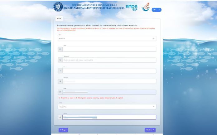 Pas 2 permis de pescuit ANPA 2023 persoane fizice COMPLETARE DATE PERSONALE