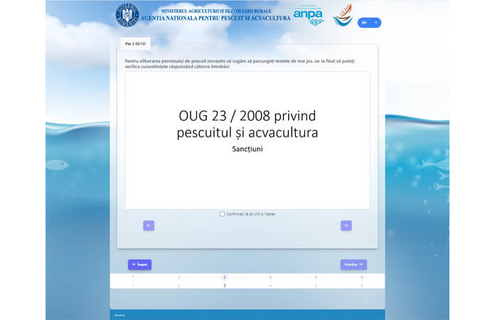 Pasul 4 in etapa de obtinere a unui permis de pescuit online ANPA este reprezentat de validarea cunostintelor in urma testului sustinut la etapa anterioara.