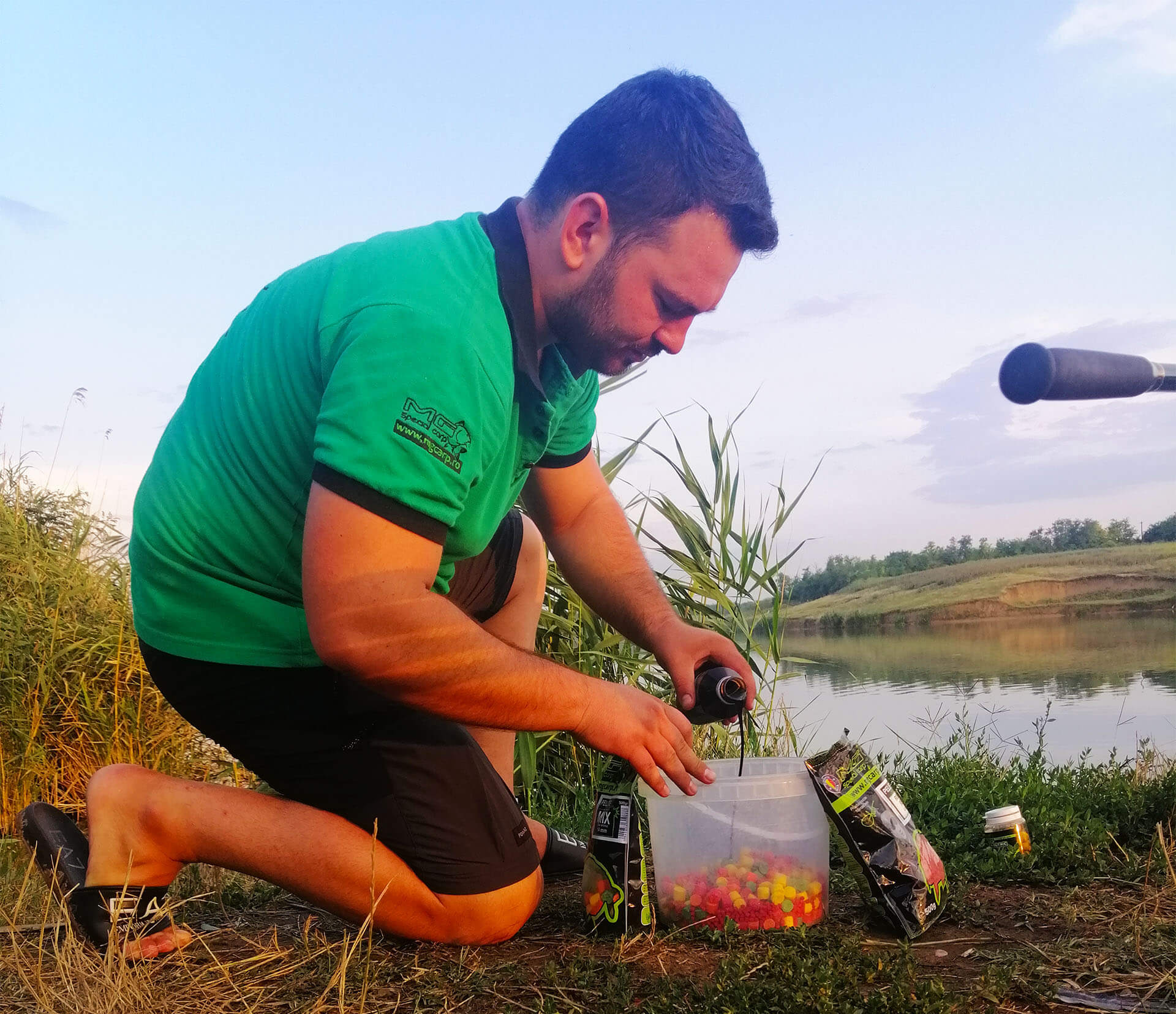 Am apelat la o nada dedicata apelor reci, imbogatita cu CSL. Am pescuit nada celor de la MG Special Carp. Partea lichida, pe langa CSL, a constat si in aditivul MG Carp insecte si libelule.