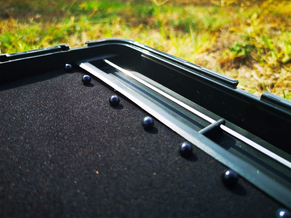 Balamalele cutiei sunt confectionate dintr-un plastic rezistent la uzura. De asemenea, mecanismul de blocare este unul sigur, confectionat dintr-un material robust.