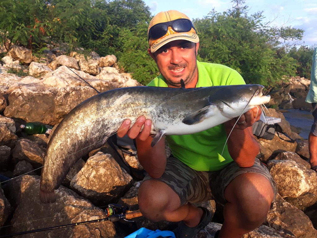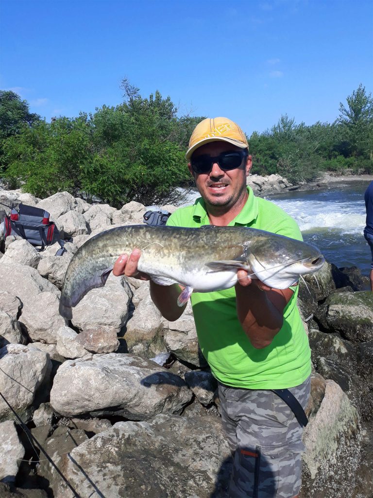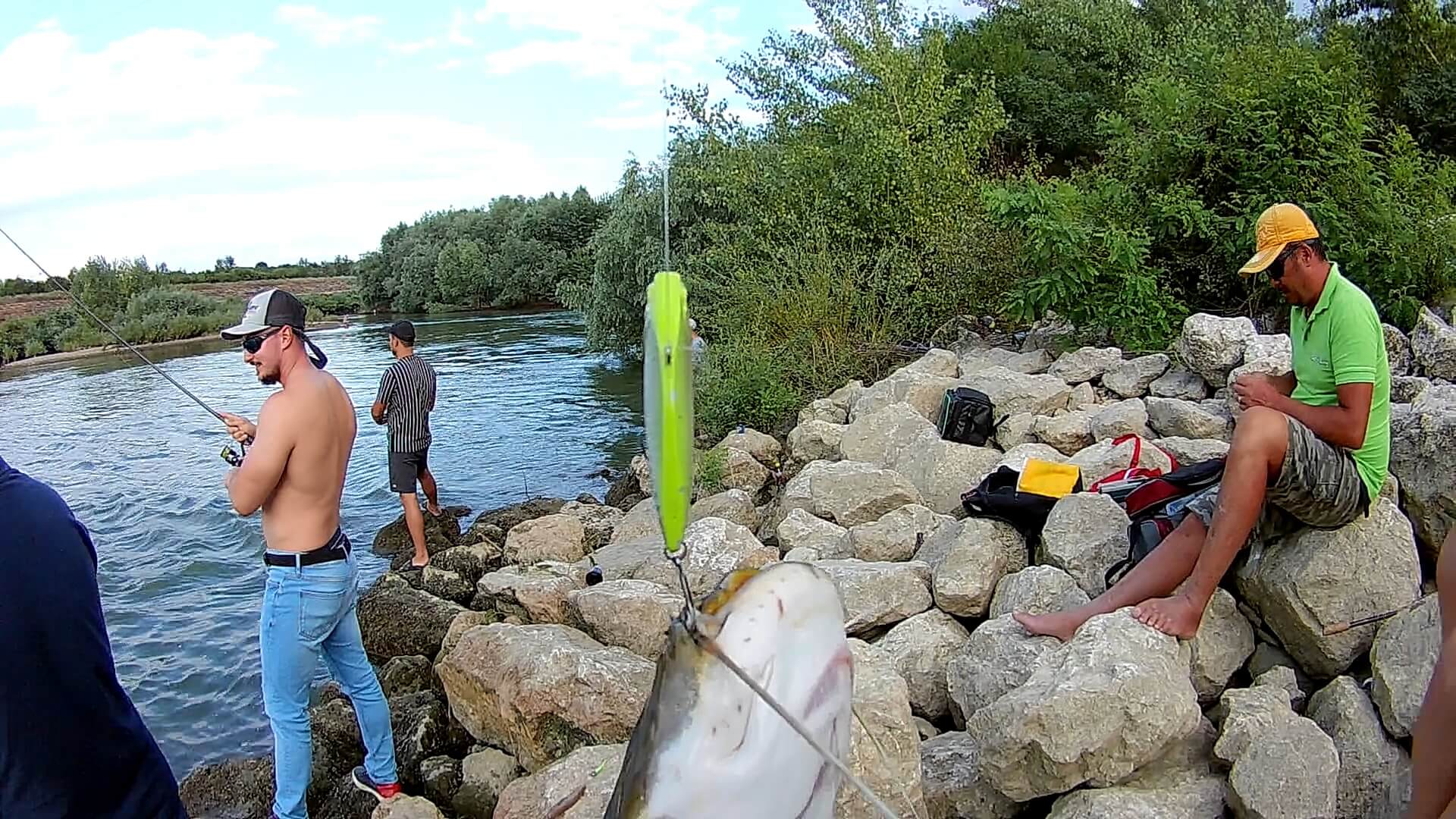 Suntem 10 pescari pe vreo 12m de mal. Nu vreti sa stiti cum arata firele pe apa! 😂😂 Unii peste altii! Dar nu conteaza pentru ca reusim sa ne agatam destul de rar.